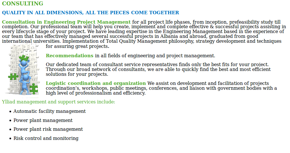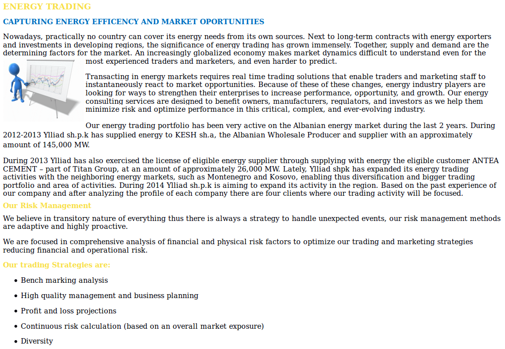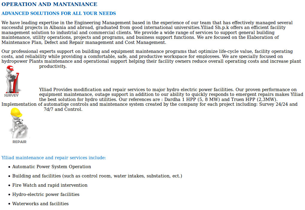 Ylliad LTD is a company established in 2009 located in Albania. With a vast area of activity covering markets of water, energy and environment fields with services of: